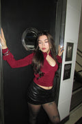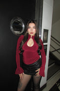 Romántico, elegante y sensual. El Condesa Top destaca por su encaje delicado, cuello mao y escote sutil que realza el busto. Su silueta ajustada estiliza la figura, mientras las mangas amplias aportan movimiento y sofisticación.